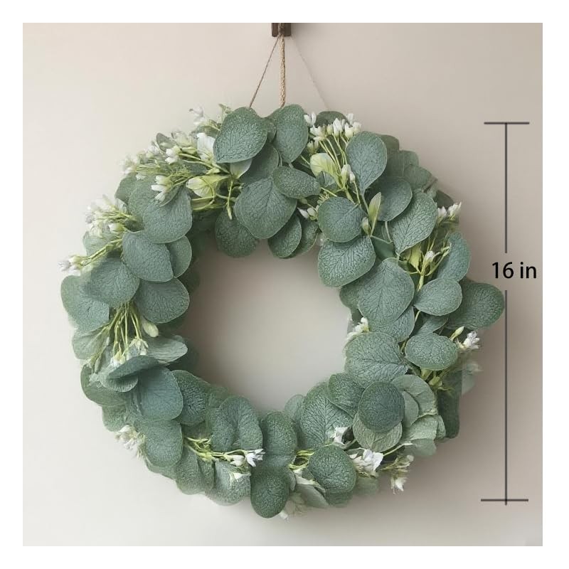 - 【High-quality Beautiful Material】 Artificial wreath, more real. Only using Grade A+ green leaves ensures your wreath will arrive beautifully. Decorative front door wreath made of simulated flowers and green leaves.