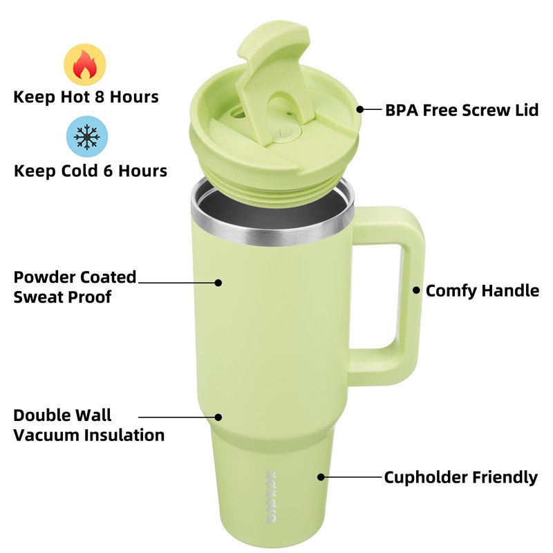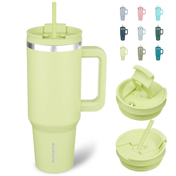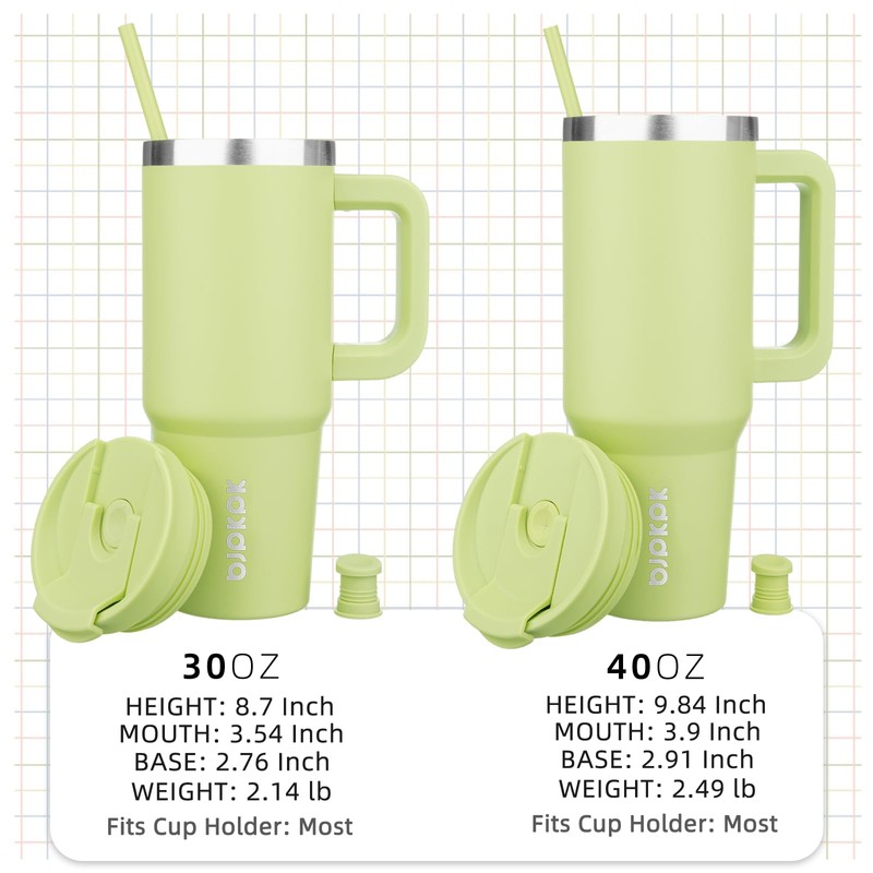 BJPKPK Tumbler With Handle 40 oz Stainless Steel Insulated Tumbler With Lid And Straw For Water Or Ice Coffee,Macaron Green