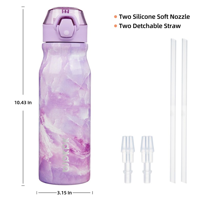 - BPA-Free Water Bottle With Straw And Carry Handle: Has 2 Straw And 2 Silicone Spout, All Can Removable For Easy Cleaning, Comfortable Handle Makes It Easy To Carry, Also Making It An Ideal Choice For Outdoor Activities Or Everyday Use