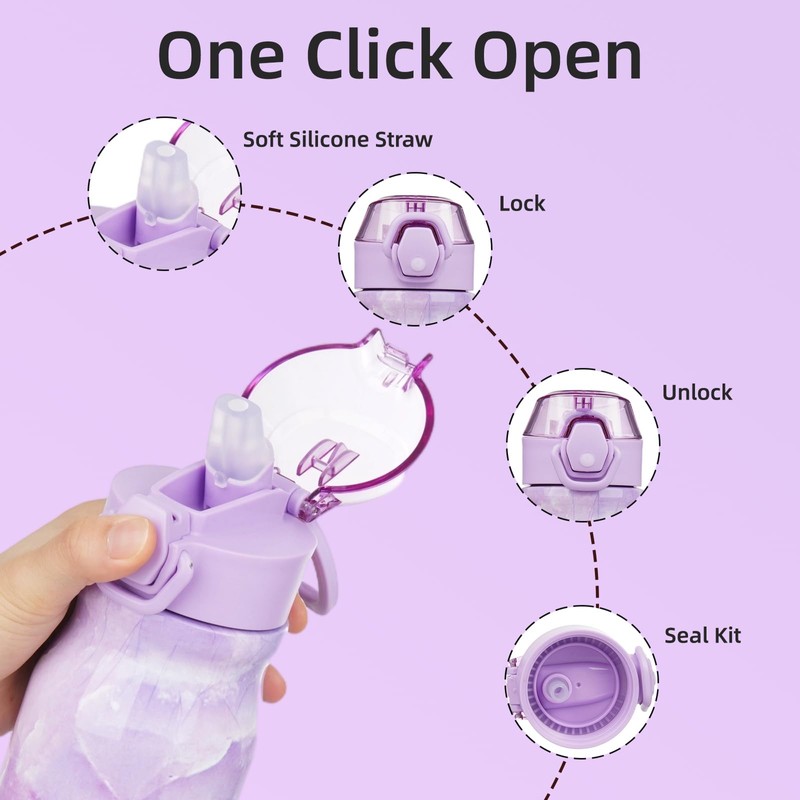 - Leak Proof Locking Lid: Open Your Insulated Water Bottle With The Simple Push Of A Button, Easy For One-Handed Use, The Bottle Has A Protective Cap That Keeps The Drinking Spout Clean, Has A Silicone Locking Latch To Prevent The Lid From Opening