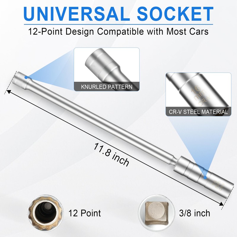 • Specifications: 16mm Swivel Magnetic Spark Plug Socket Set, 3/8 Inch Drive Thin Wall Socket, allowing you to better use and work in narrow or inaccessible places.