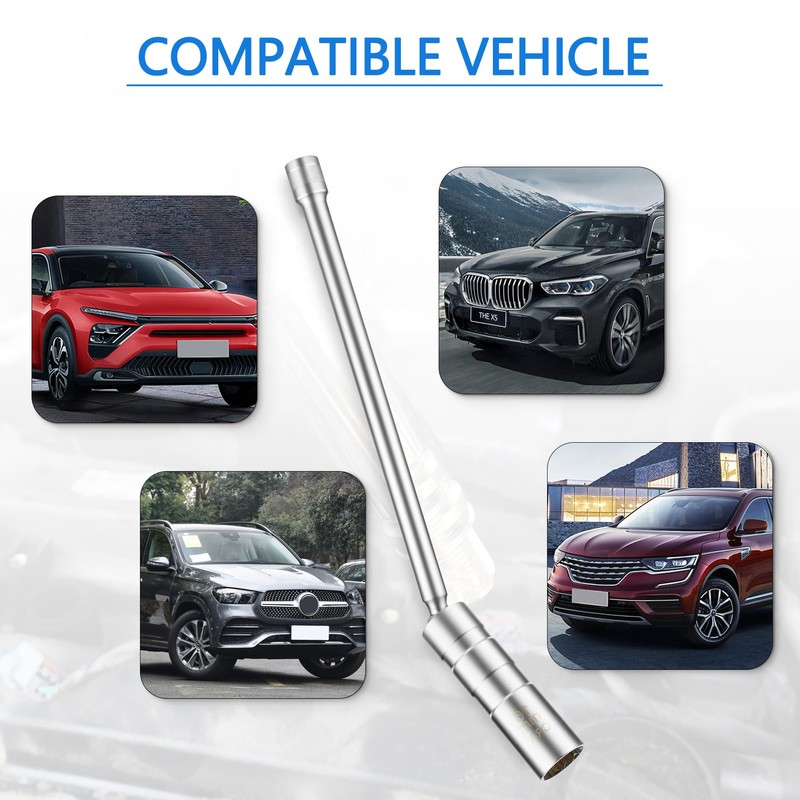 • Quality:This spark plug socket is made of high quality Chrome Vanadium Steel. Socket features a 12-point design, thinner wall thickness can be achieved, only 17.7mm.