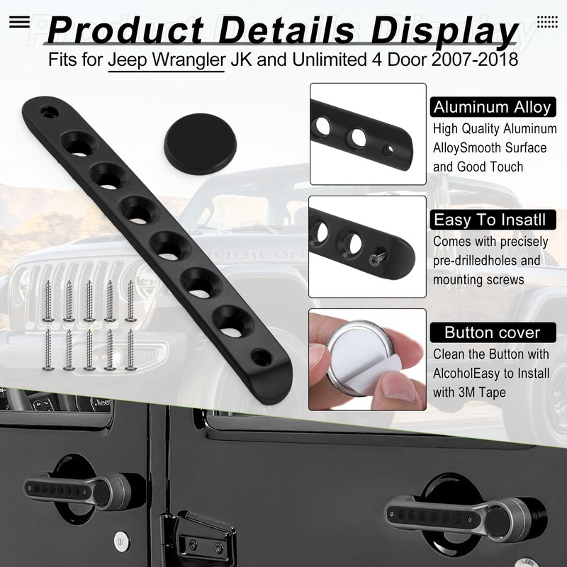 BJSIA 5 PCS Side Door Grab Handle Inserts Cover & Push Button Knobs Cover Trim Compatible with Jeep Wrangler JK JKU Sahara Rubicon Unlimited 2007-2018 Car Accessories Aluminum(Black)
