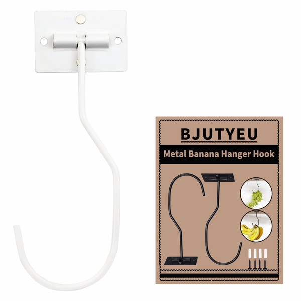 BJUTYEU Self-Adhesive Banana Hook, Grape Hook, Kitchen Banana Hanger, Keep Bananas Fresh Under The Cabinet, with Magnetic Absorption Storage Perfect Design 1 Pieces White