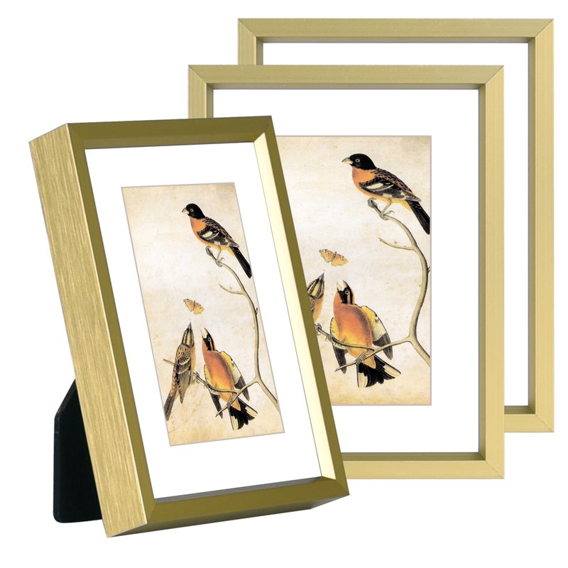 BKABOT 3x4 Picture Frame Set of 3, Brass Aluminum Metal Photo Frames with HD Glass, Fits 2x3 with Mat or 3 x 4 without Mat, Display for Wall and Table