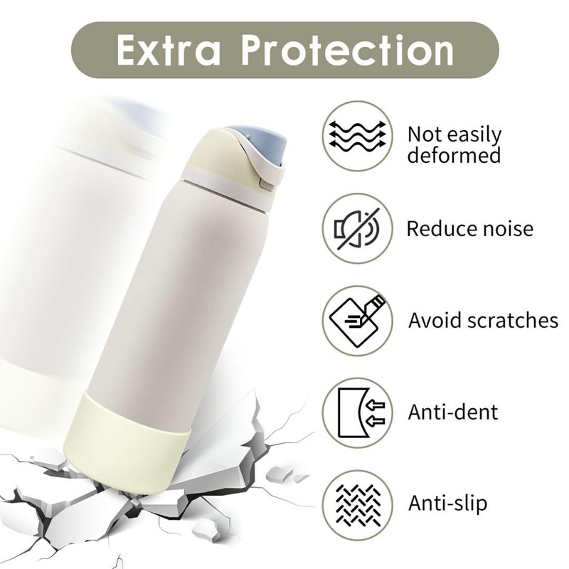 - Ultimate Shield: Protect your valuable water bottle with this sturdy bottom sleeve. It prevents scratches, dents, reduces noise, and is reusable. The added grip at the bottom keeps the bottle steady and helps extend its lifespan