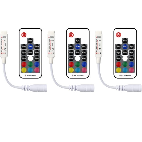 Bkiyougo DC 12V RGB LED Controller with 17-Key RF Wireless Remote Control Dimmer for 5050 3528 5630 LED Strip Lights(3 Pack)