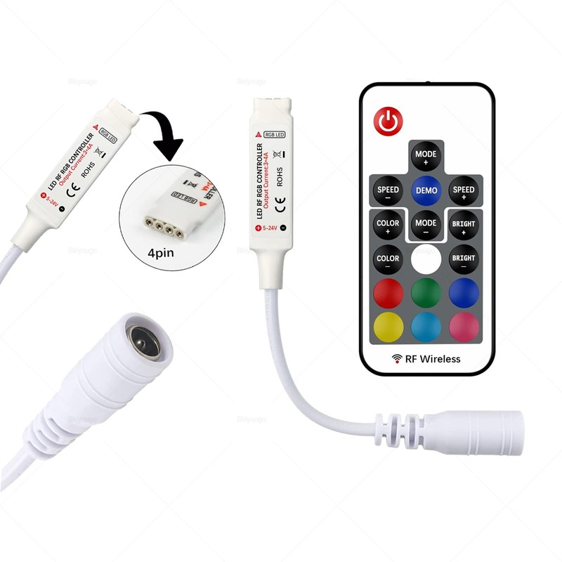 - ➤Convenient LED controller kit--mini RGB controller + RF wireless remote.Tips;Because the line order of each factory RGB light bar is not uniform, our controller line sequence is RGB.