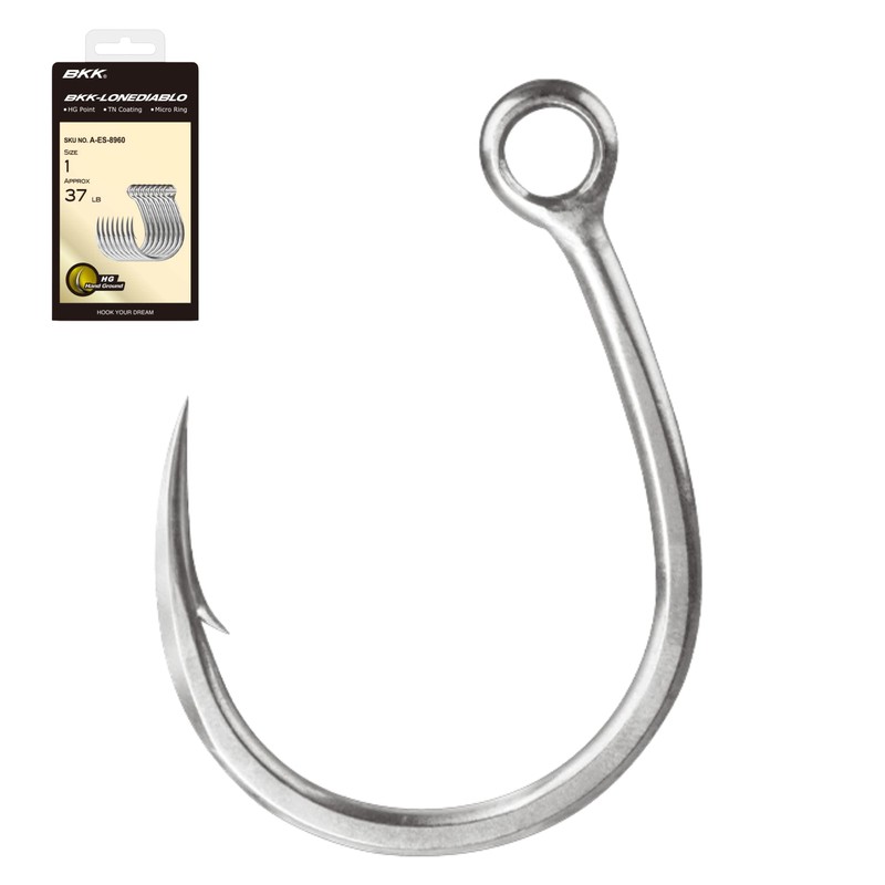 BKK LONEDIABLO Single Lure Hook | 4-Pack | 5X | Saltwater Ultra-Antirust Coating | Hand Ground Point | Popping Trolling Stickbaits