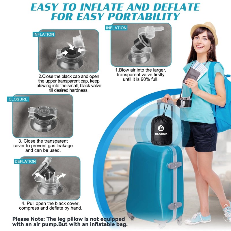【Easy to store and carry】The inflatable leg pillow has an inflation port, which is easy to inflate and deflate. The leg wedge pillow measures 24.8*19.7*9.4 inches, it can comfortably support your legs and prevent your legs from slipping off when you sleep. The size after deflation is 6.6*4.7*3.1 inches, which is easy to carry. It is the best choice for traveling or sending it to family and friends.