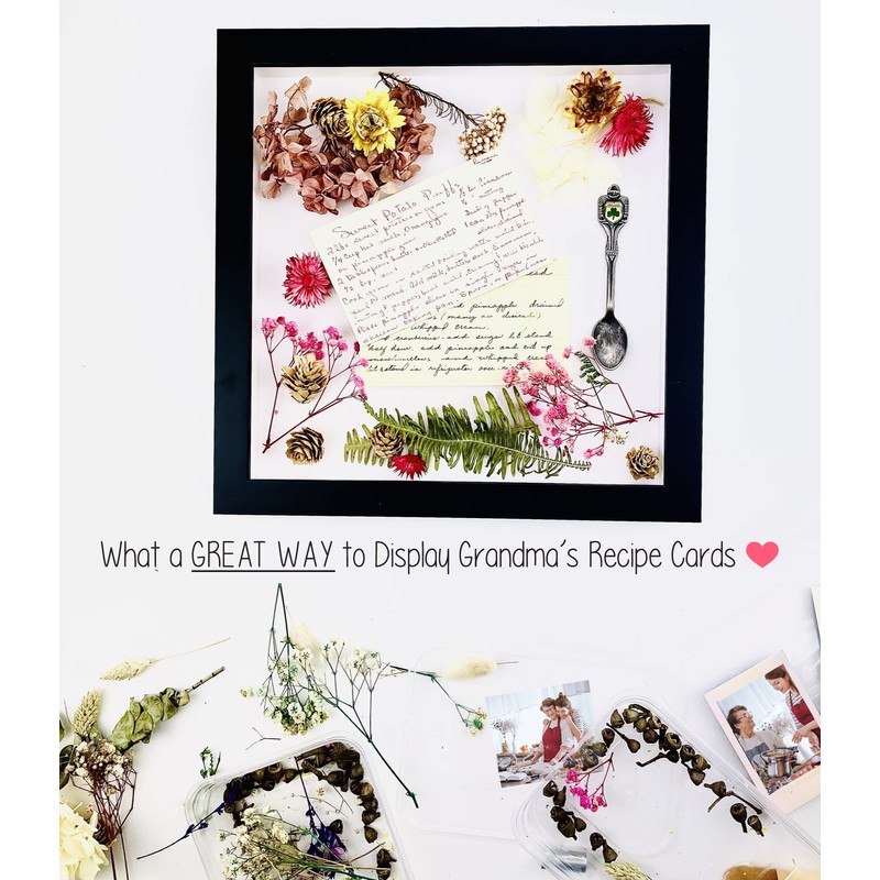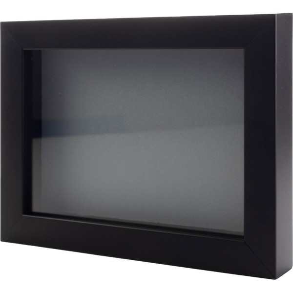 - Black Wood Shadow Box Frame Interior dimensions of 12x12 inches with 3/4" of usable depth. UV resistant, frame-grade acrylic protective front. Acid-free grey backing board and interior walls. Hanging hardware included for vertical or horizontal display.