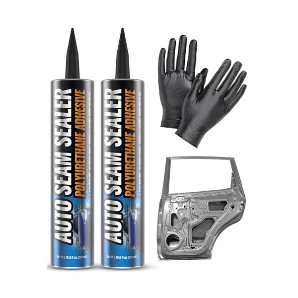 [Black] 2 Pack Professional Automotive Seam Sealer, Paintable Quick-Set Polyurethane Auto Body Seam Sealer for Metal Surfaces of Cars, Trucks, Etc, Includes Gloves & Tip - Black RV Roof Sealant
