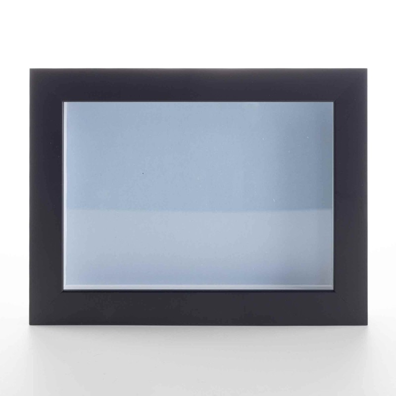 - Blue Wood Shadow Box Frame Interior dimensions of 8x8 inches with 3/4" of usable depth. UV resistant, frame-grade acrylic protective front. Acid-free blue backing board and interior walls. Hanging hardware included for vertical or horizontal display.