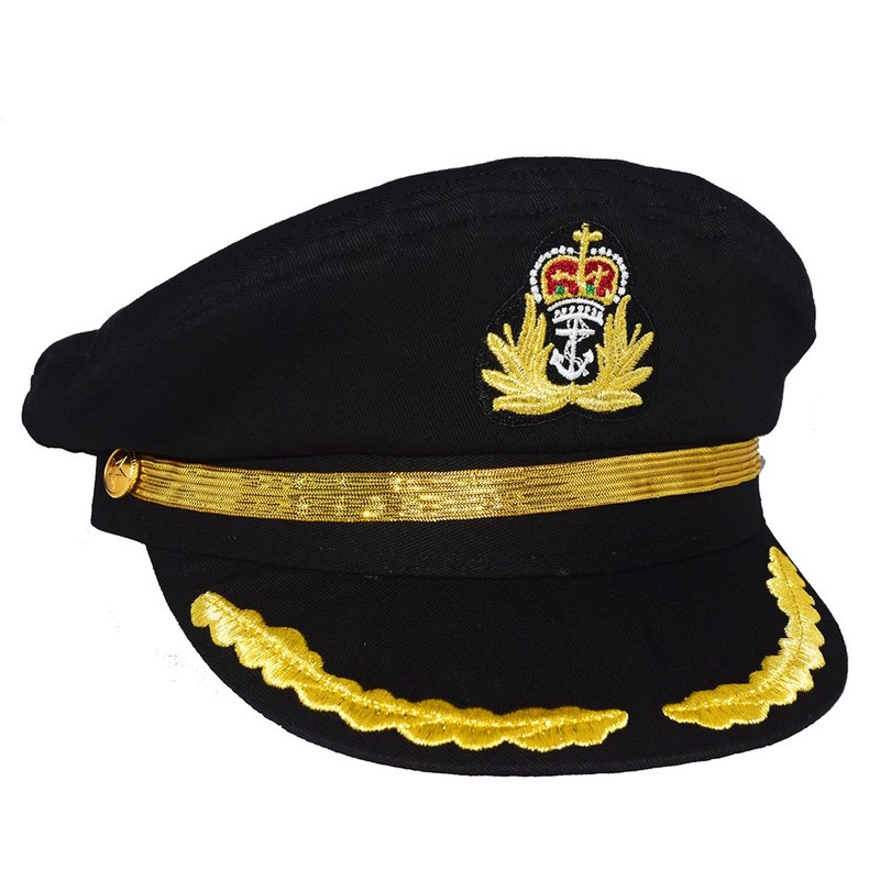 - Classic Gold embroidered nautical mariner emblem & golden rope onto the brim