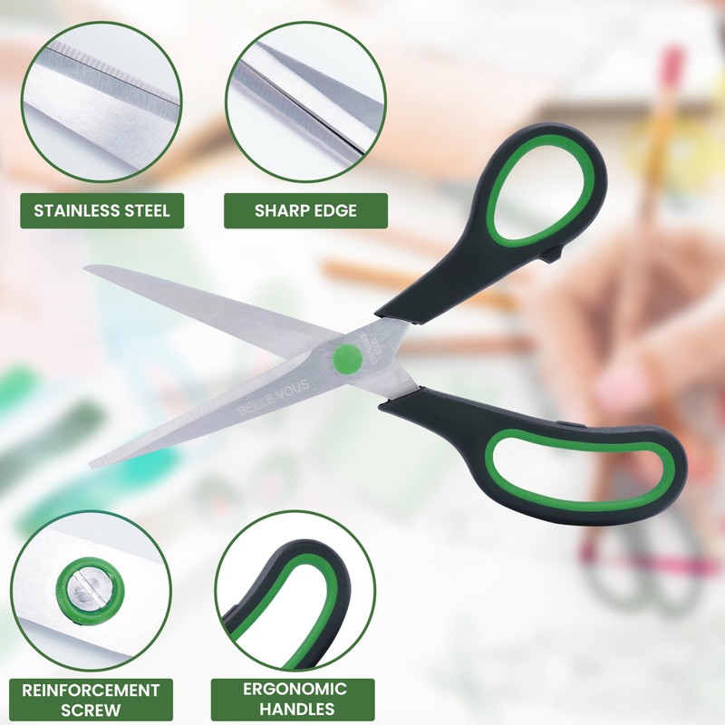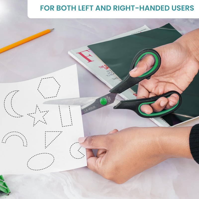 • ERGONOMIC: The handles of these office scissors are made of soft, black and green rubber. Its shape offers you a secure hold and a pleasant cutting experience.
