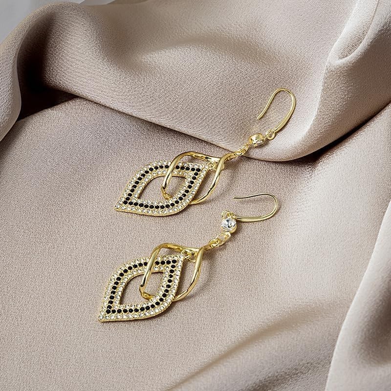 Black and Gold Earrings for Women Long Gold Earrings Formal Infinity Dangle Earrings Gold Spiral Earrings Long Swirl Earrings Gold Teardrop Earrings Elegant Leaf Earrings Trendy Bridal Earrings Statement Earrings for Brides