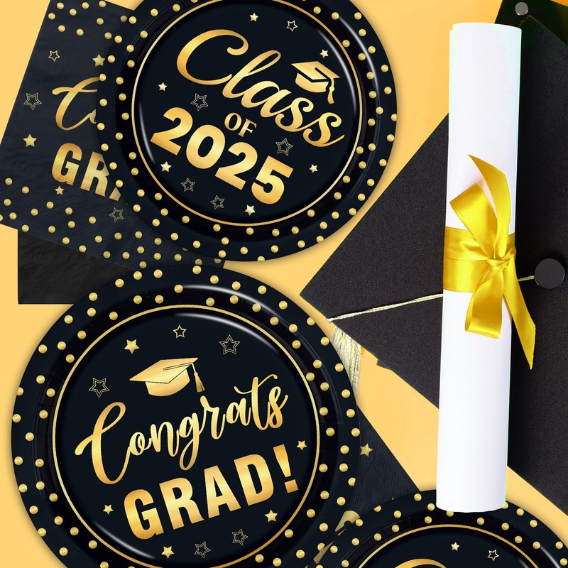 - 【Occasions】Graduation plates and napkins sets are perfect for 2025 graduates of primary school, high school, college, master, PhD and other graduation ceremonies. Impress your guests and have an amazing and unforgettable time!
