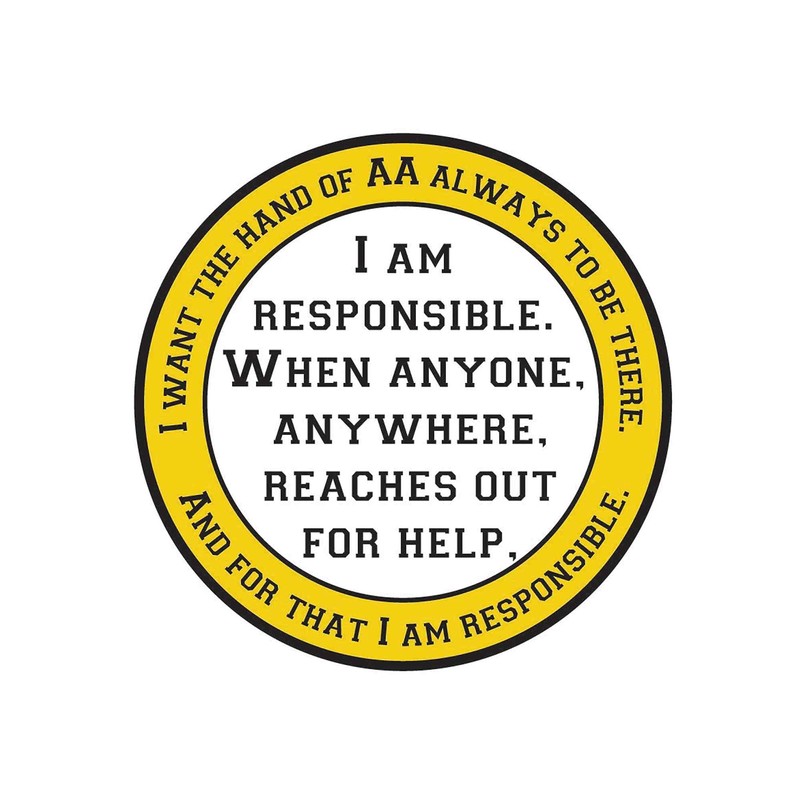 - On the back is the AA Responsibility Pledge. I am Responsible. When anyone, anywhere, reaches out for help, I want the hand of A.A. always to be there.