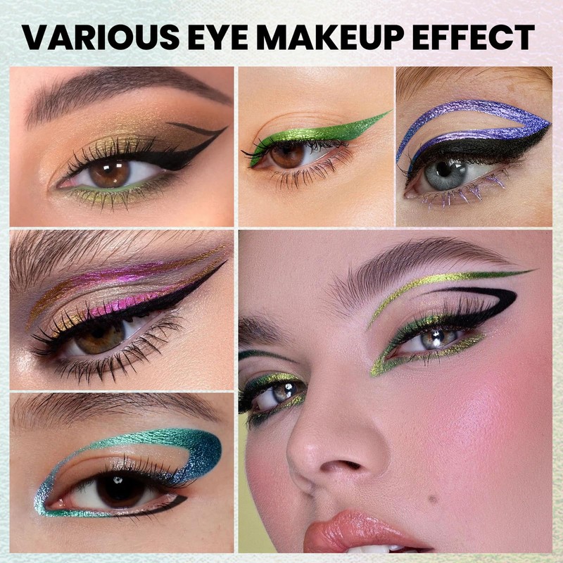 - Smooth and Highly Pigmented: This eye liner comes in 6 shades, from the basic matte black to emerald green, holographic purple and deep blue. Draw the inner eyeliner with a black curved tip, then apply the extremely dazzling metallic luster. Add multiple layers of colors as you like to create a more layered eye makeup;