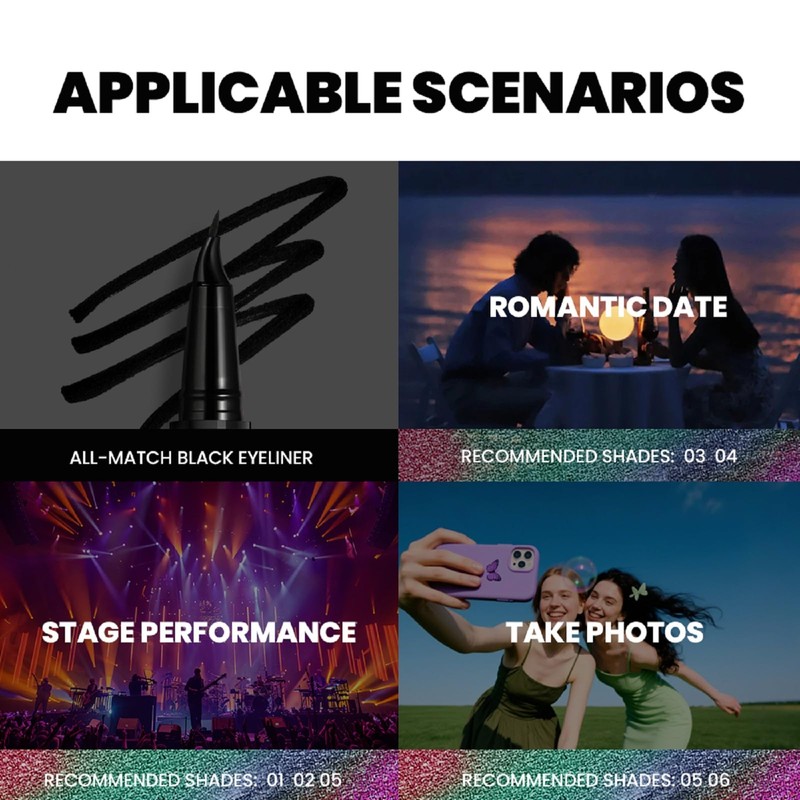 - Dual-Ended Eyeliner for Versatile Look: One end is a classic black liquid eyeliner pen, while the other end presents a dreamy color gradient as the light and perspective change. An eyeliner pencil can easily create a variety of styles ranging from daily commuting to party makeup;