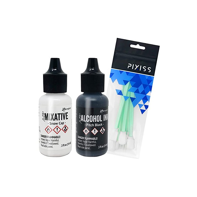 Black and White Alcohol Ink Set | Tim Holtz Ranger .5oz Snow Cap and Pitch Black Alcohol Ink with Pixiss Alcohol Ink Blending Tools