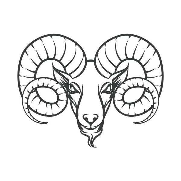 Black and White Majestic Strong Animal Drawing Vinyl Decal Sticker (4" Wide, Big Horn Sheep Ram)