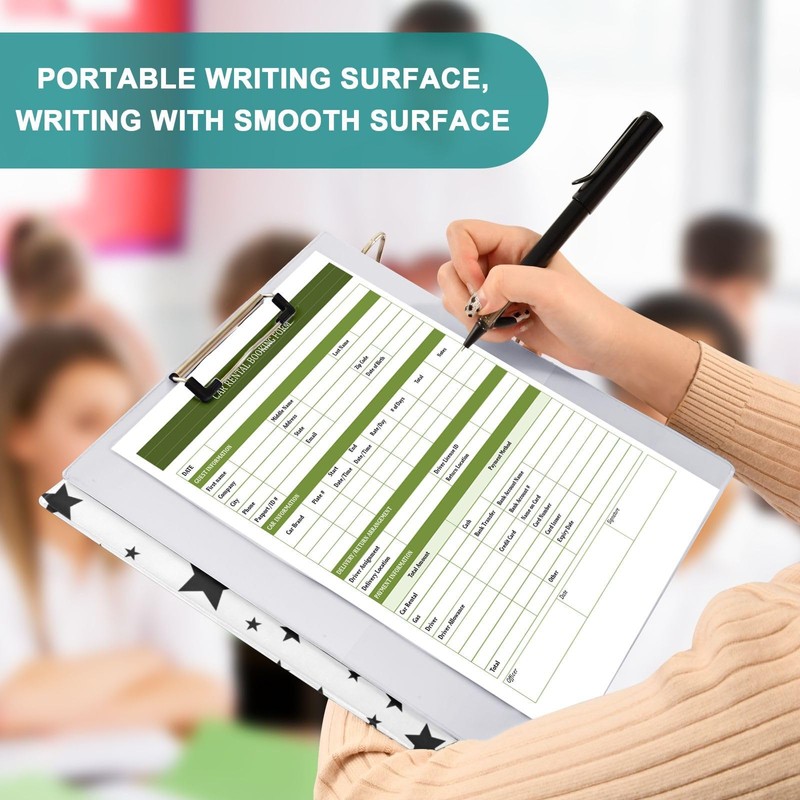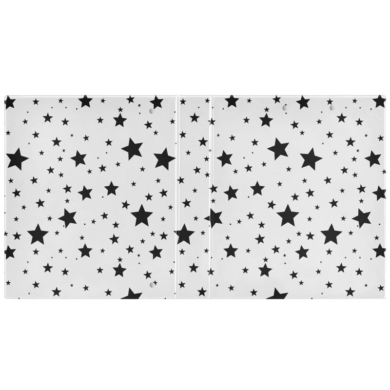 Black and White Stars Pattern 3 Ring Binder 1.5" Decorative D-Ring Binder with Clipboard&3 Clear Pockets, Holds 200 Sheets A4 Size Paper Waterproof Binders for School Home Office