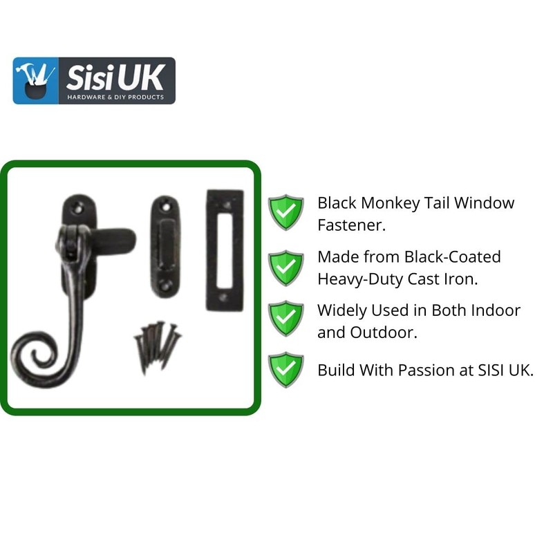 - Premium Quality: These monkey tail casement fastener are made from heavy duty black powder coated cast iron. Durable, stable, corrosion resistant, and not easy to damage, providing a reliable and wear proof solution for you.