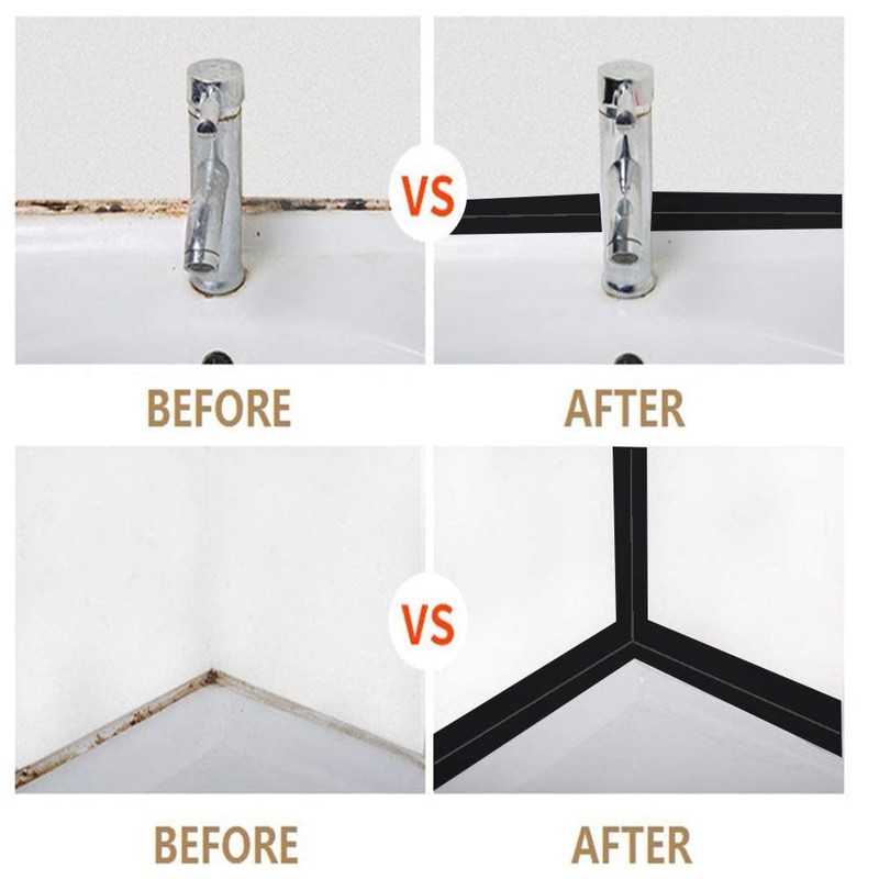 Black Bath Sealant Strip, Shower Sealant, Bath Seal Caulk Tape,Shower Tile Sealer Adhesive sealant,Caulk Tape for Bath & Kitchen (2 Roll Black)