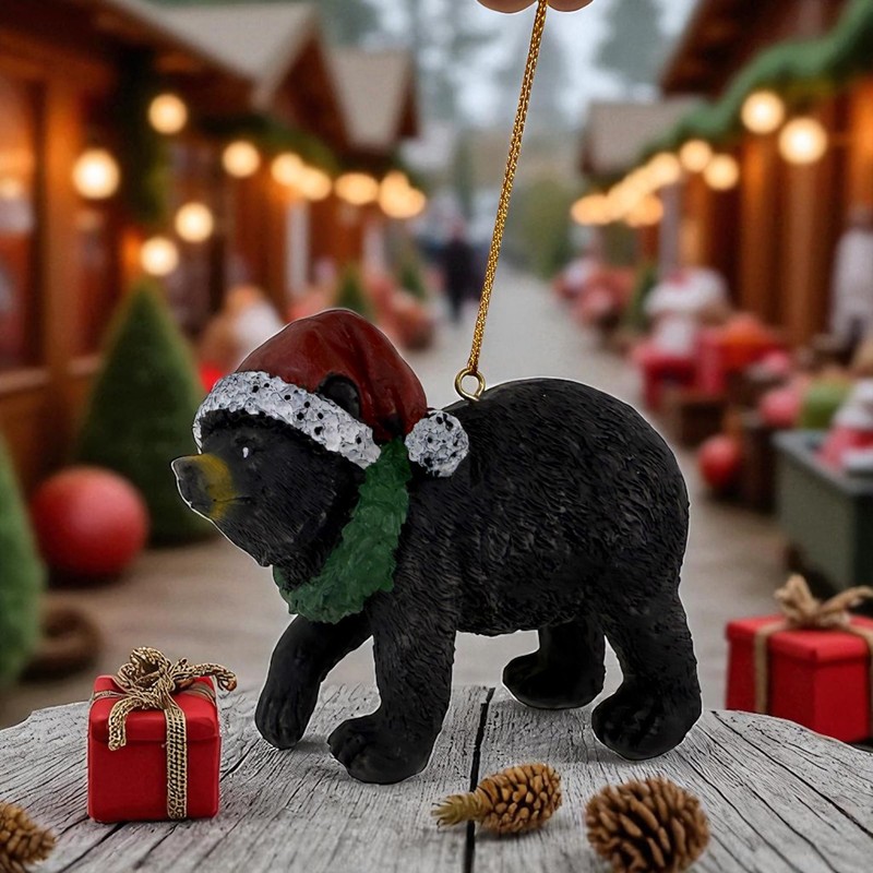 Black Bear Ornaments – Bears with Santa Hats Christmas Tree Ornament Decorations, Set of 4