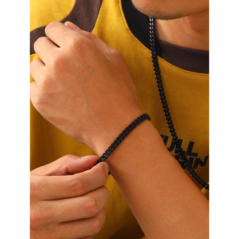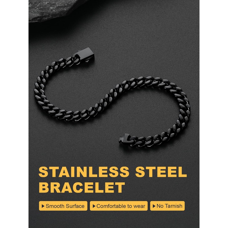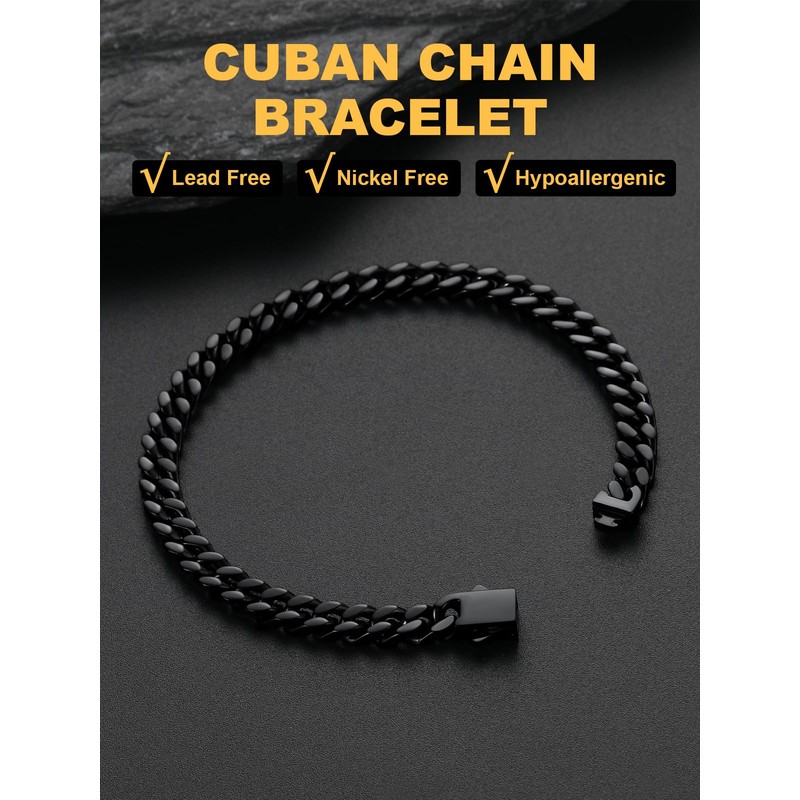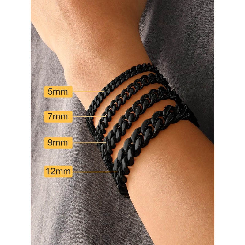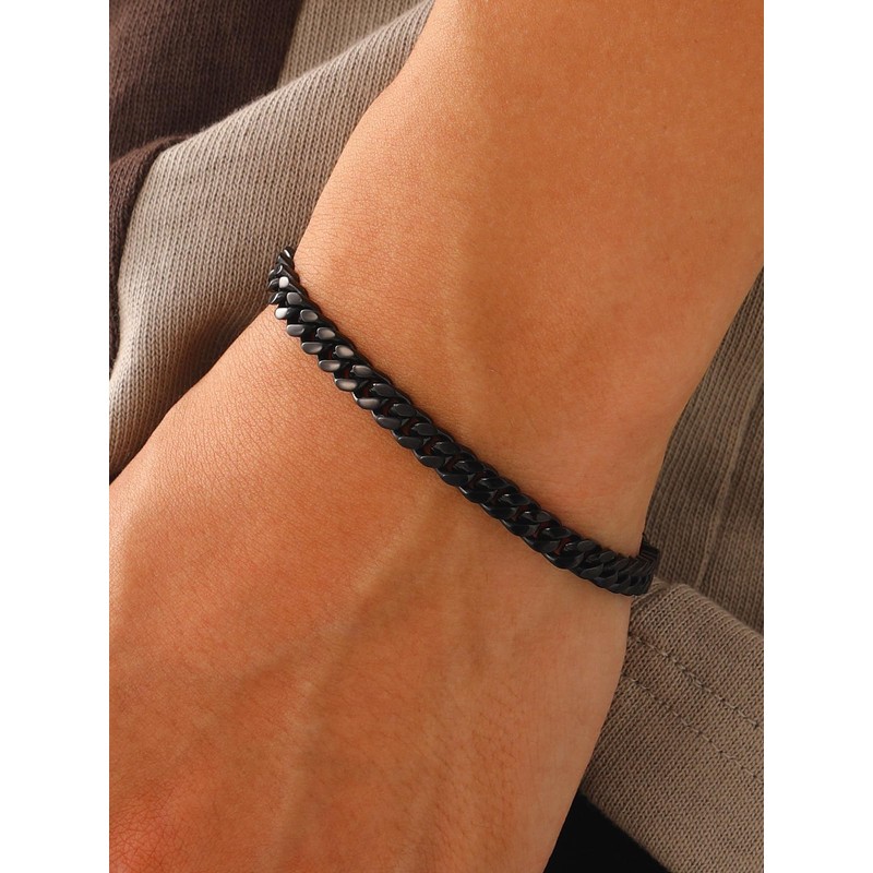 Black Bracelet for Men, Cuban Link Chain Bracelet, 5mm Mens Link Bracelet,19cm