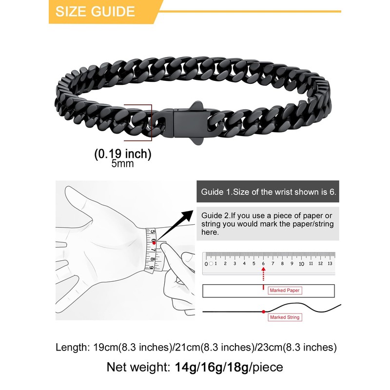 - Size of Men’s Chain Bracelet - Width:5mm/7mm/9mm/12mm. Length:19cm/21cm/23cm.