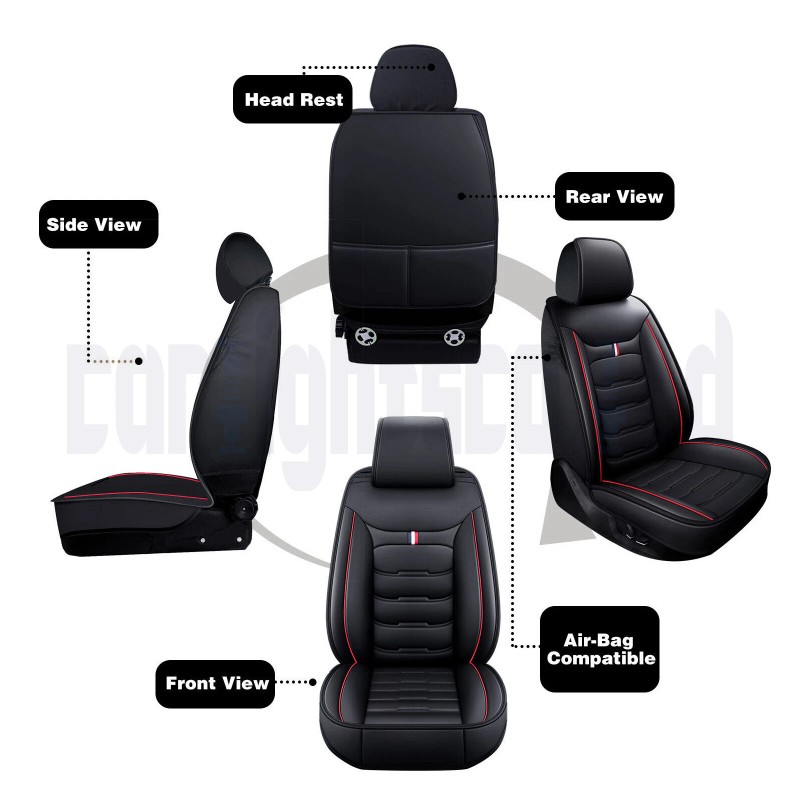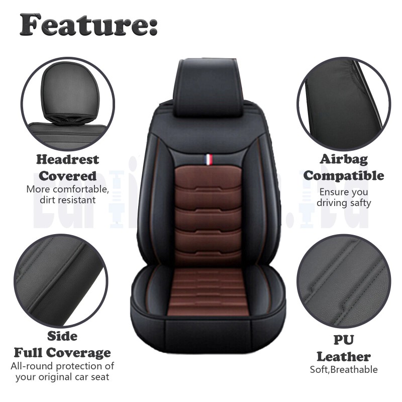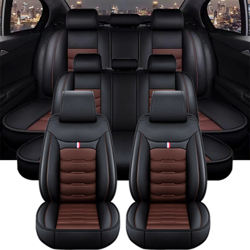 Black & Brown Full Set Leather 5-Seats Front Rear Protector For SUV Truck Sedan