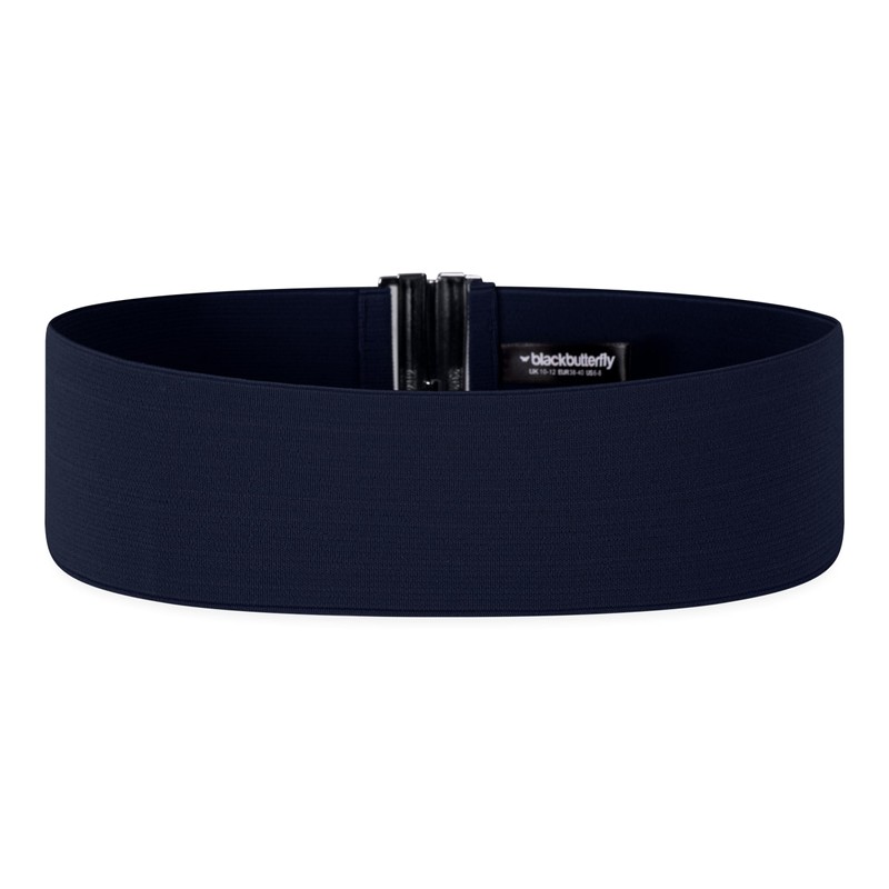 Black Butterfly 3 Inch Elastic Vertical Buckle Waist Belt (Midnight Blue, UK 6 - 8)