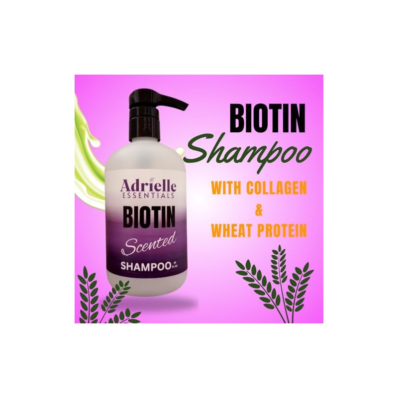 - Adrielle Essentials Biotin Shampoo contains nourishing blend of biotin, collagen, and wheat protein Adrielle Essentials Biotin Shampoo contains nourishing blend of biotin, collagen, and wheat protein Adrielle Essentials Biotin Shampoo contains nourishing blend of biotin, collagen, and wheat protein Adrielle Essentials Biotin Shampoo contains nourishing blend of biotin, collagen, and wheat protein