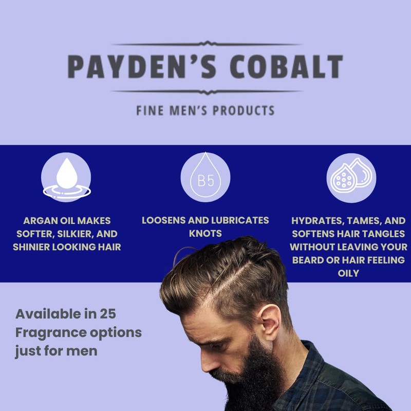 - Payden's Cobalt Hair Detangler with Argan Oil and Pro-Vitamin B-5 loosens and lubricates knots