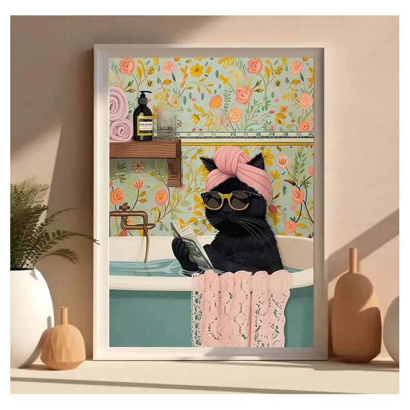 Black Cat Adult Paint by Number,Funny Bathing Cat Adults' Paint-by-Number Kit...