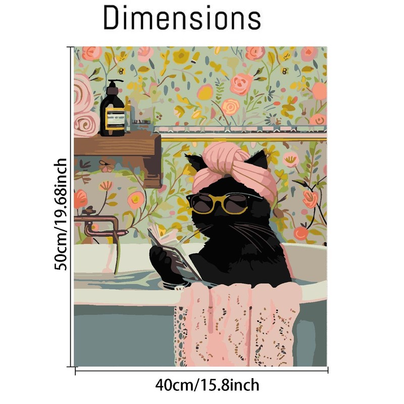 • 【 Paint by Numbers Kit for Adults-A Black Cat is Taking A Bath and Reading】Painting by numbers kits include paint by number canvas, size 16x20 inches (no border),1 set acrylic paints,1 set paint by numbers brushes(include 3pcs).and number painting for adults accessories,hook and number drawing paper guide.