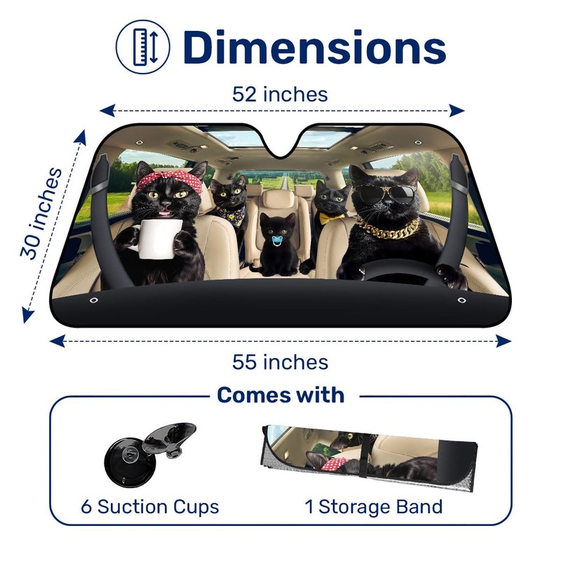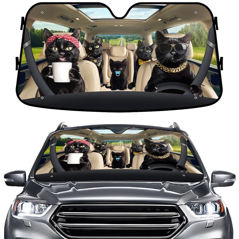 Black Cat Family Funny Windshield Sun Shade for Car SUV Truck (55x30 Inches),...