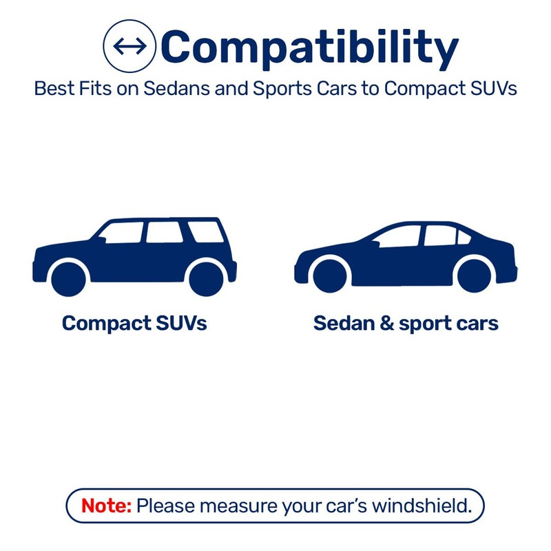 • FIT MOST CAR: Our universal-sized sun visor for car windshield measures 55 inches wide and 30 inches tall to fully adapt to the windshield of most vehicles such as car, suv and truck. Please check your windshield's size to make sure it fit.
