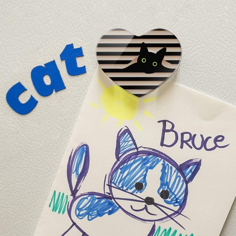 Black Cat In Window Heart Acrylic Fridge Refrigerator Magnet