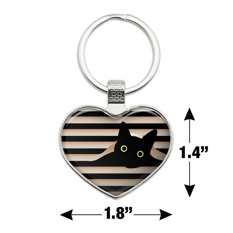 Black Cat In Window keychain will bring some flavor to your boring bundle of keys! The heart shaped keychain has a chrome-plated metal base, while the awesome printed graphic, as shown, is encased in a protective layer of resin for durability. The heart shape is approximately 1.8" (4.6cm) x 1.4" (3.6cm).