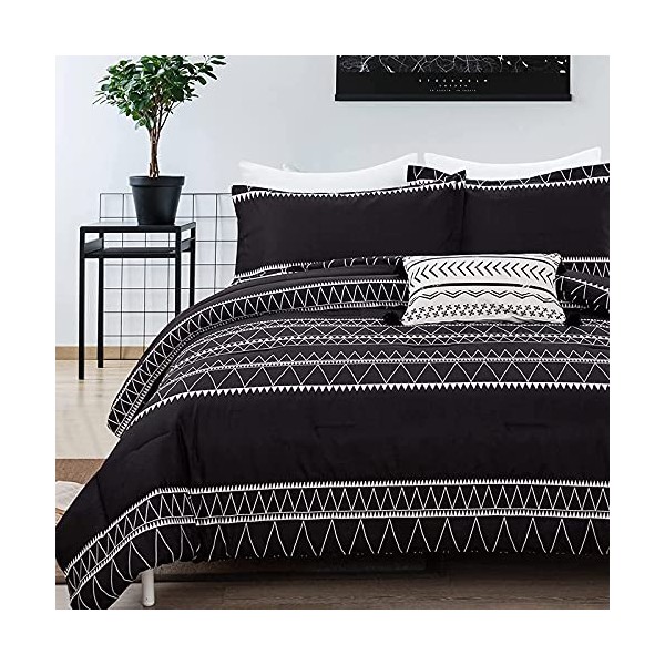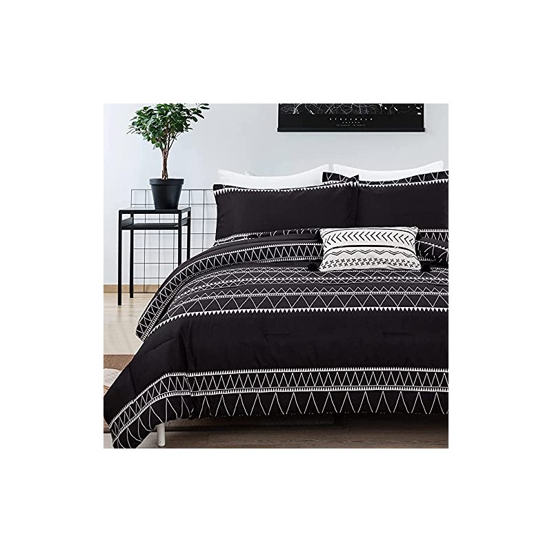- [BLACK BOHO DESING]: The black boho comforter is designed a simple white triangle line pattern printed bedding set, it will bring a style of fashionable and modern to your bedroom. Suits for All Seasons.