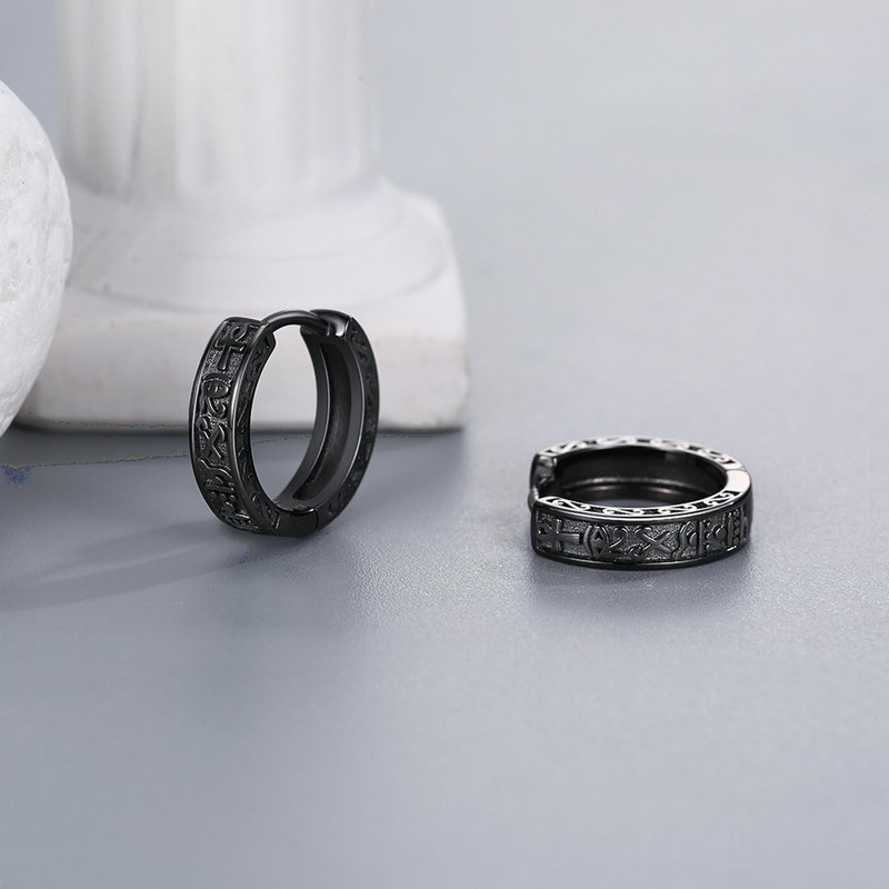 Black Creole Earrings Silver 925 Men's Viking Rune/Eye of Horus Earrings Hoop Earrings Unisex Jewellery for Men Women, Sterling Silver, No Gemstone
