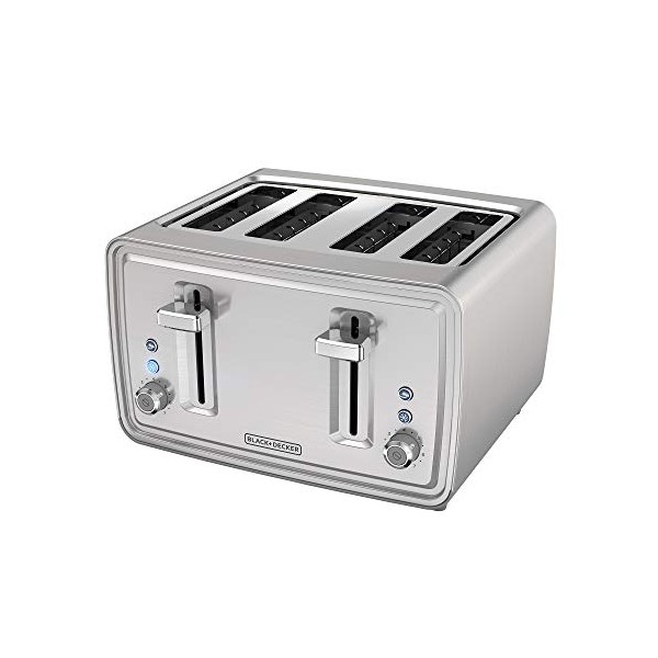 The BLACK + DECKER? 4-Slice Toaster has room for the entire family's favorite breads, bagels, and more. Extra-wide slots fit thick buns and artisan breads, and the self-centering guides adjust to any thickness for even toasting. Independent shade selectors control each half of the toaster, with special settings for bagels and frozen items and a cancel option to stop toasting at any time. Plus, this toaster will look great on your countertop with the brushed stainless steel finish.