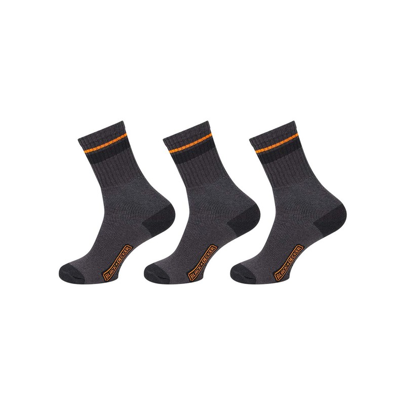 Black+Decker Unisex Men's Women's Work Socks Essential Work Crew Socks Pack of 12 Black Grey Melange Cotton, Size: 47-49, Choice of Colours: 6 Pairs Black & 6 Pairs Black/Grey, Black and black/grey