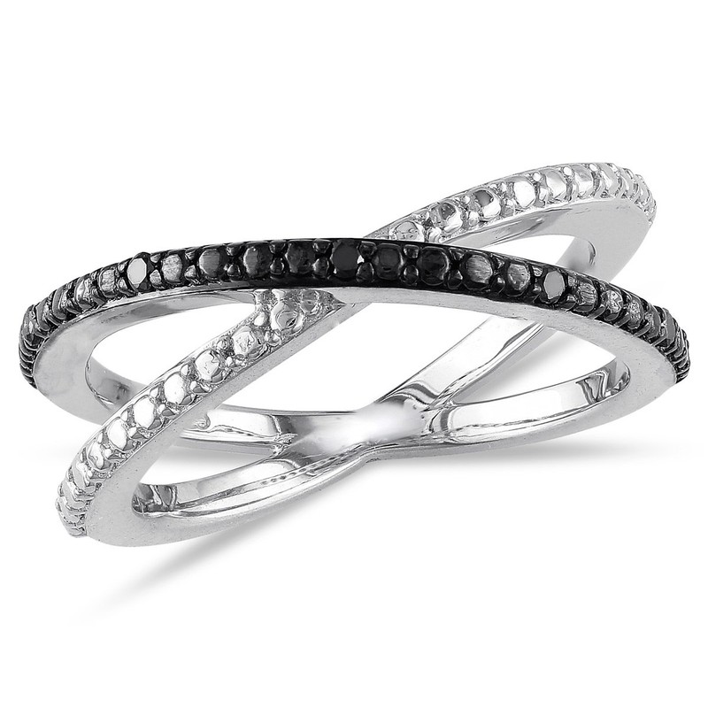 Black Diamond Criss-Cross Ring in Sterling Silver