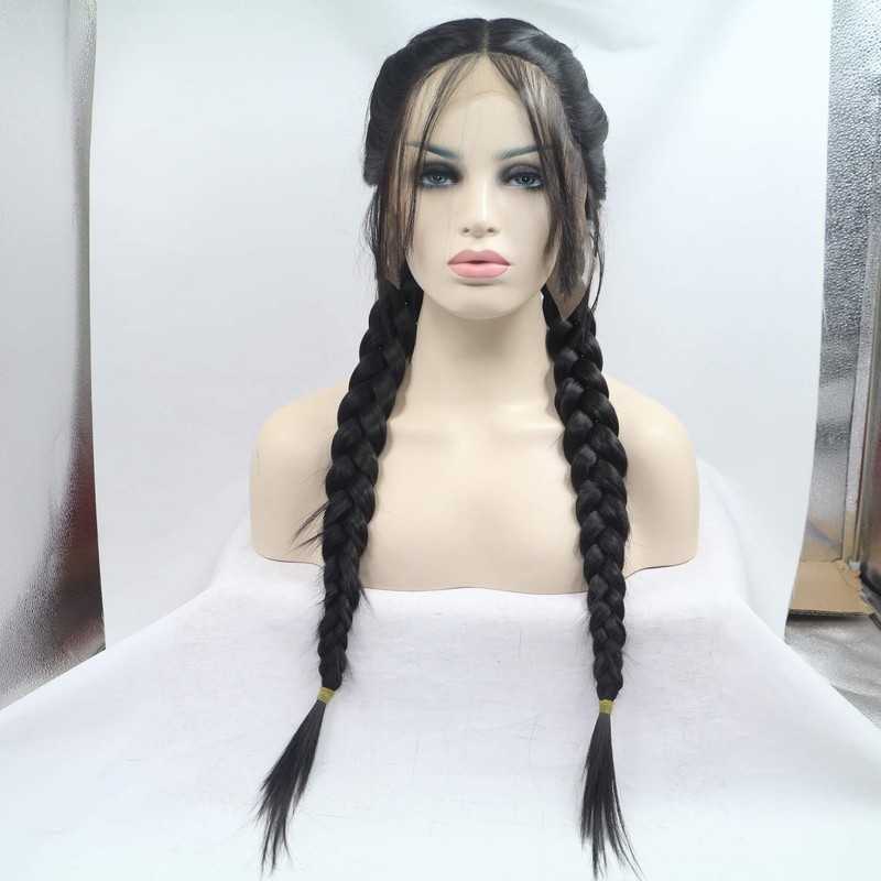 - Black double braid wigs, 24 inches (length can be adjusted), black color and so on(the color as the picture), natural hairline
