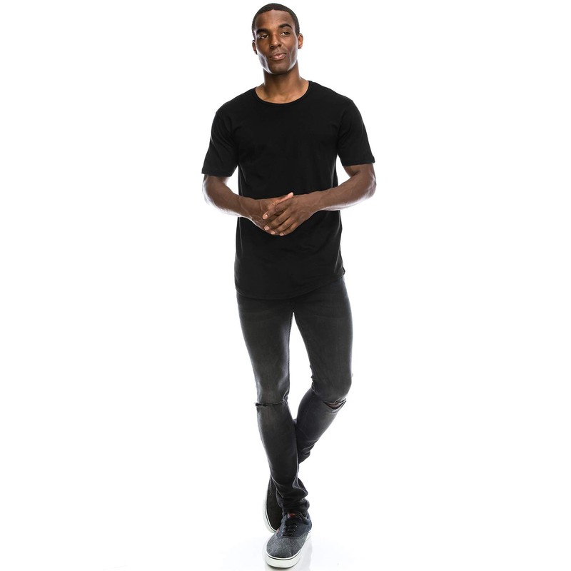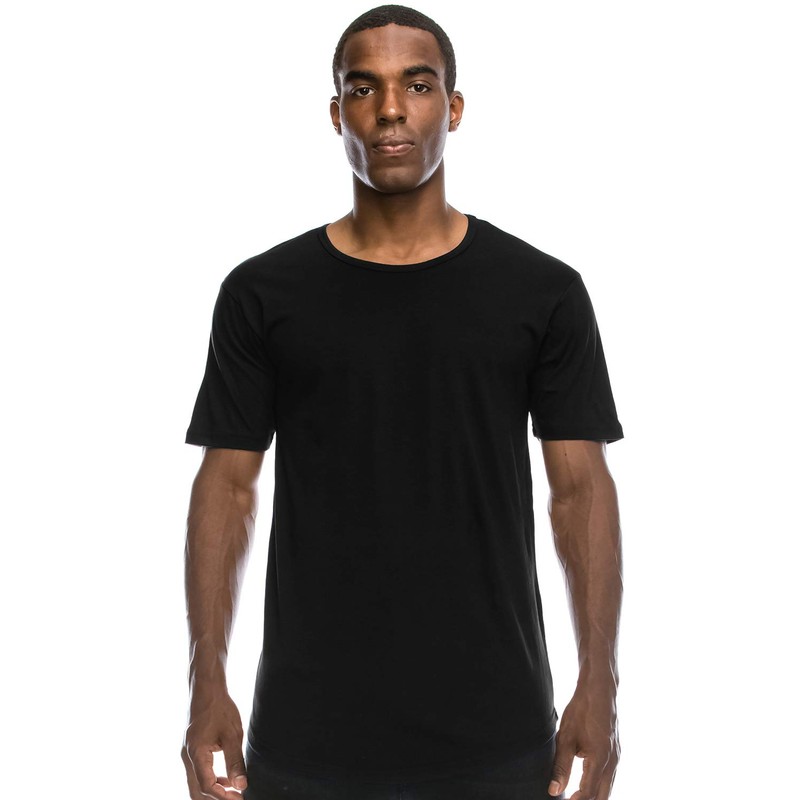 Black Drop Cut Curved Hem Scallop Extra Long Longline Big and Tall T-Shirt 2X