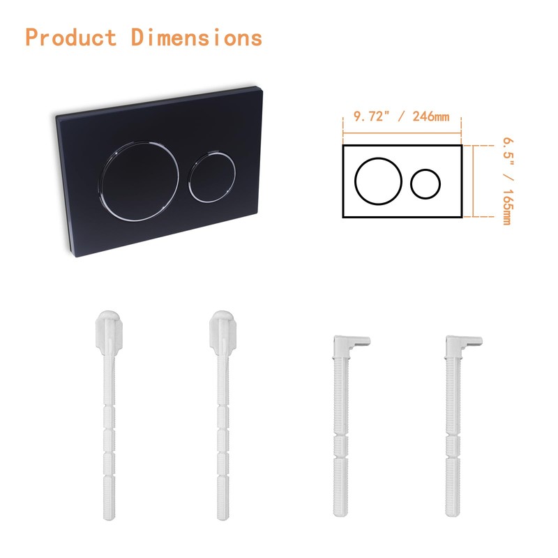 ✨ The flushing plate comes with everything you need, including the actuator plate, mounting frame, 2 spacer bolts, and 2 handle rods.